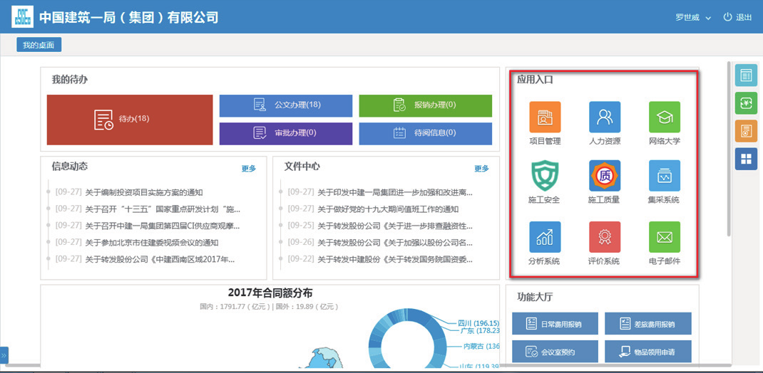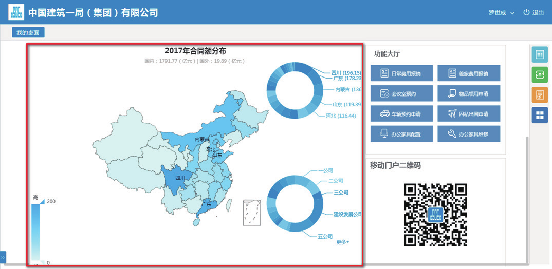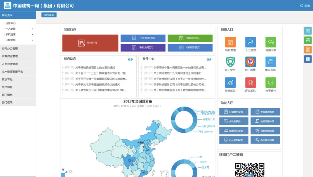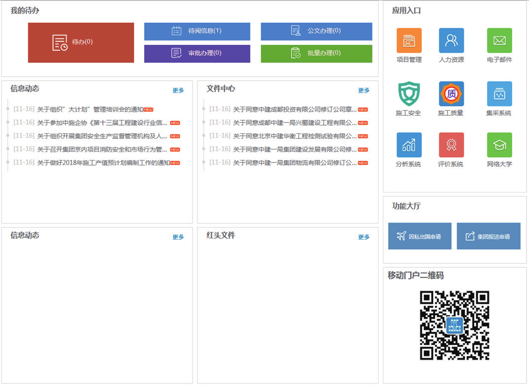 中建一局在 2007 年与8868体育(中国)官方网站-登录入口合作,部署实施了协同办公平GLinkWorks4.3,随着信息技术的发展及公司业务的需要,在 2017 年升级到了 GLinkWorks7.0。并在此基础之上,依托8868体育官网登录入口提供的“协同 +”能力将各业务系统连接,以OA 组织架构为先决条件实现了单点登录、代办聚合、功能聚合;基于异构系统数据库统一,实现数据整合及业务应用为一体。通过异构系统的数据库开放,门户系统将各业务系统重点数据钻取、分析、统计,所生成结果以报表形式展现在各级门户上,同时结合 PC 端移动端数据同源,实现了随时随地随手办公的效果。真正为员工提供了快速发起通道,为辅助领导决策提供了有力支撑,最终实现集中管控业务、提供市场核心竞争力。