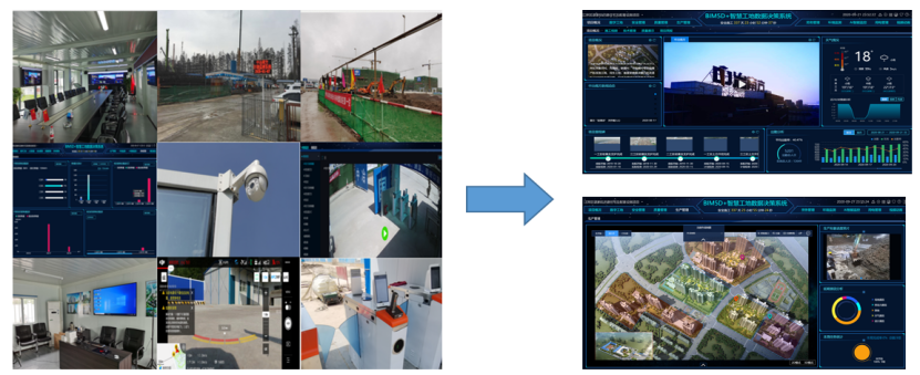 智慧工地平台是将现场系统和硬件设备集成到一个统一的管理平台,综合性运用BIM技术管理、质量安全管理、生产管理和劳务实名制管理等软件系统和VR、环境监测、视频监控、塔吊吊钩可视化、AI人工智能等智能硬件,对人员、设备、安全、质量、生产、环境等要素在施工过程中产生的数据进行全面采集与处理,将产生的数据汇总和建模形成数据中心。实现工程施工可视化智能管理,以提高工程管理信息化水平。