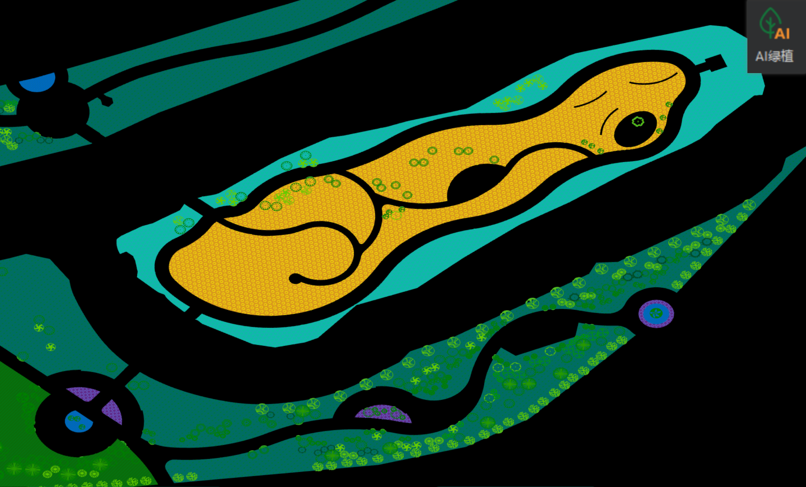 内部点识别或边线识别根据CAD线围成的封闭区域快速识别路面铺装等手算麻烦的地方,并快速布置不规则路面和铺装;填充识别可一键批量识别绿化,相比手工描图大幅提效。