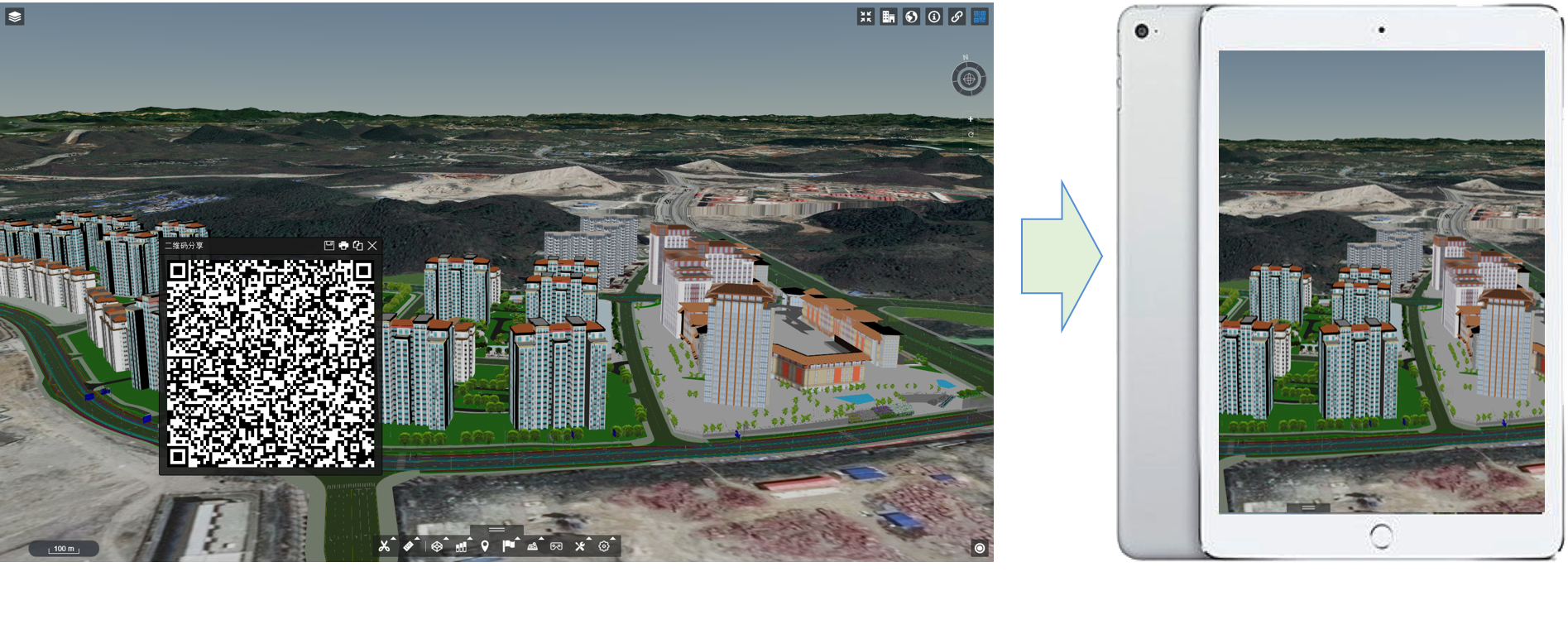 云端共享在云端进行项目设计数据集成后,可生成二维码供用户在移动端进行项目浏览和批阅,具有“免安装、超便捷、快响应”的优势。 |