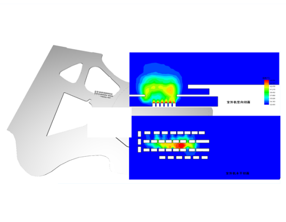 建筑风环境模拟分析:室外机气流组织模拟针对多层建筑空调室外机放置空间较小或室外机集中放置的应用场景,通过对室外机运行工况模拟分析,判断是否满足设计要求,指导室外机布置方案优化,提升设备运行能效。可以查看室外机分布任意切面处温度、风速、风压、风速矢量、流线图、流线动图等,并输出参与模拟室外机的进风温度、出风温度、返混率结果,进风温度超出限制会进行标红提示。 |