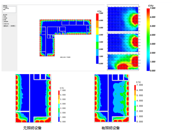 建筑风环境模拟分析:室内空调气流组织模拟对建筑室内暖通空调系统末端进行气流组织模拟,通过室内温度场、风速场、湿度场分布情况,对空调末端进行布置位置优化、送风工况参数优化等,保障室内舒适度要求,降低暖通空调系统能耗。可设置任意切面查看云图结果,输出指定高度处温度、风速、风压、PMV、流线动图。 |