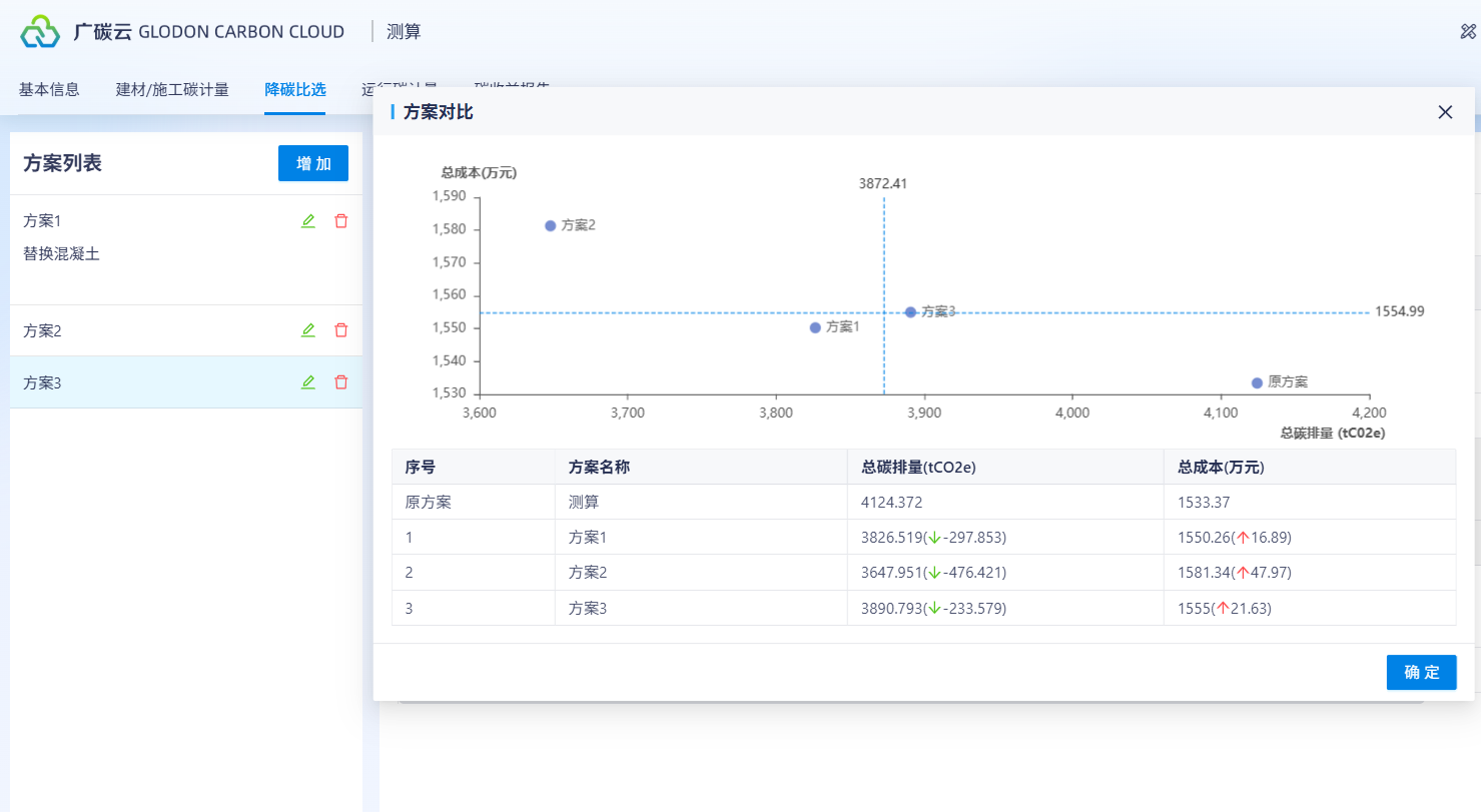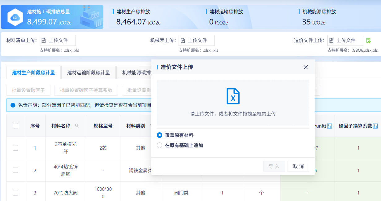 适用于各项目建材生产及运输的碳排放计算,可支持绿色建材碳因子查询、不同建材组合隐含碳计算、不同建材组合减碳效益计算、不同建材组合的碳成本经济比选。