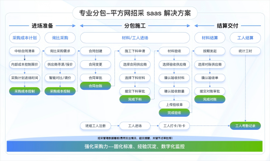 专业分包版-平方网招采 saas 产品聚焦“机电安装、装饰装修、消防工程”等专业分包类型,围绕项目进场前、中、后全周期,以成本、 询比采购、合同下料、验收对账、劳务考勤五大模块为核心,实现从成本预控、招采选优,到履约高效、劳务合规,再到验收结算与成本复盘的闭环管理。通过全链路数据穿透,打通业务数据,助力专业分包企业实现项目可视化管控,提升多方协同效率,降低综合成本,最终提高项目利润。 |
