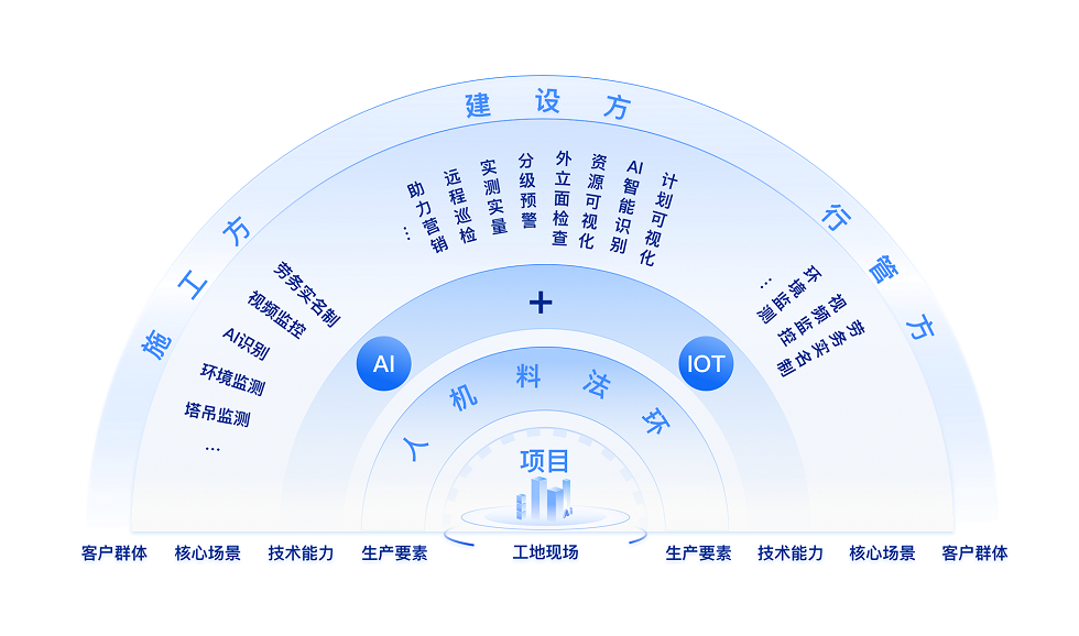 助力施工方监测劳务与环境,支持建设方管理计划及资源,辅助监管方巡查预警,推动现场管理与企业决策智慧化。