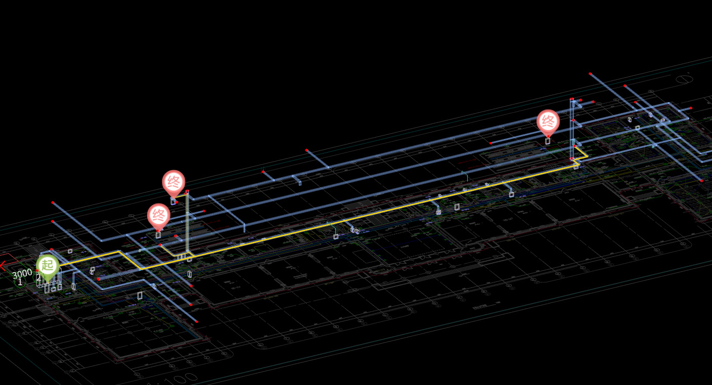 快速查找起终点,沿桥架自动规划最短路径,跨层自动计算,灵活切换,一键算量