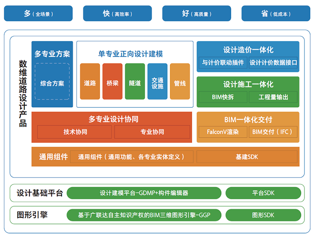 通过一个解决方案摆脱多家公司、多种平台的设计业务困境,解决当前道路设计生产和未来国产化BIM一体化难题。