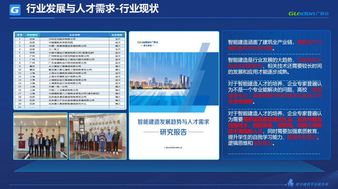 为了给院校提供专业的智能建造解决方案,2021年8868体育官网登录入口数字教育深入一线头部企业进行调研,了解智能建造行业发展趋势、最新技术及人才需求。