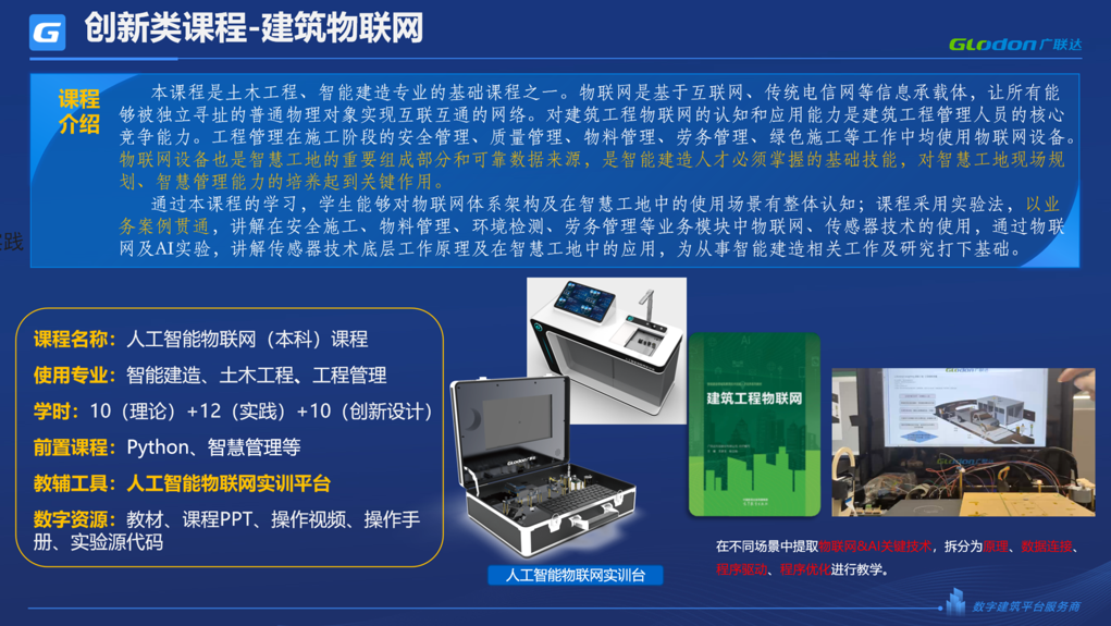 《建筑物联网》课程,从智慧工地业务切入物联网,让学生直正了解物联网技术在建设工程中的实际应用,并辅以与工程业务匹配的物联网实验教学,培养学生建筑物联网技术的综合应用能力。